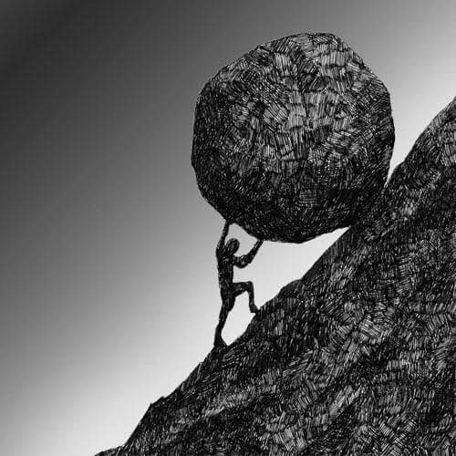 I could not help but recall Sisyphus, from the Greek myth, who was condemned by the gods to roll a rock up to the top of a mountain, only to have the rock roll back down every time he reached the top.
